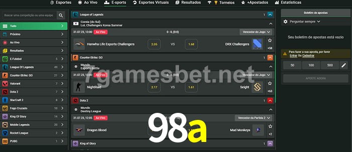 A aposta 98a oferece aos jogadores a experiência mais conveniente de apostas em eSports!
